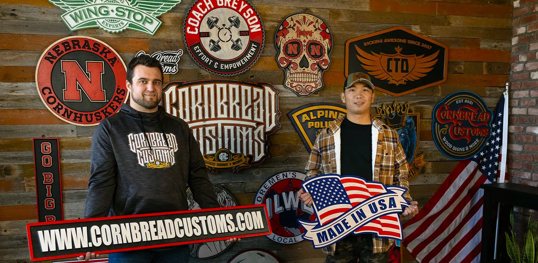 Cornbread Customs Sign Featured in Joe Rogan’s Studio Some moments remind you why you started. For Cornbread Customs, this was one of them. One of our handcrafted custom wood signs now hangs proudly above the entrance door inside Joe Rogan’s studio. Built in our Nebraska shop, this piece represents everything we stand for—craftsmanship, quality, and pride in every detail. When Joe Rogan saw the sign, he called it incredible work and said the craftsmanship was next level. Hearing that from someone who’s seen and supported artists across every field meant a lot to us. It’s not every day you hear you’re very talented from one of the biggest voices in entertainment. From a Small Nebraska Garage to the Joe Rogan Studio Cornbread Customs began in a small garage in Nebraska with a simple mission: to create handcrafted wood signs that mean something. Each sign is designed, carved, and hand-painted by real people who care deeply about their craft. Seeing our work displayed in one of the most recognizable podcast studios in the world is proof that passion and dedication never go unnoticed. Our signs have always been more than decor—they’re statements of pride, identity, and story. Why People Choose Cornbread Customs Our custom signs are made for those who value craftsmanship and individuality. From military emblems and business logos to sports teams and family crests, every Cornbread Customs piece is built to last and made to stand out. Having our work recognized by Joe Rogan only reinforces what we’ve believed from day one: great work gets noticed. More Than a Sign, It’s a Story The sign hanging in Joe Rogan’s studio isn’t just wood and paint. It’s a reflection of our journey—from a small Nebraska workshop to walls across the country. It represents hard work, creativity, and pride in every cut, carve, and brushstroke. To everyone who has supported Cornbread Customs from the beginning, thank you. This milestone belongs to all of us.